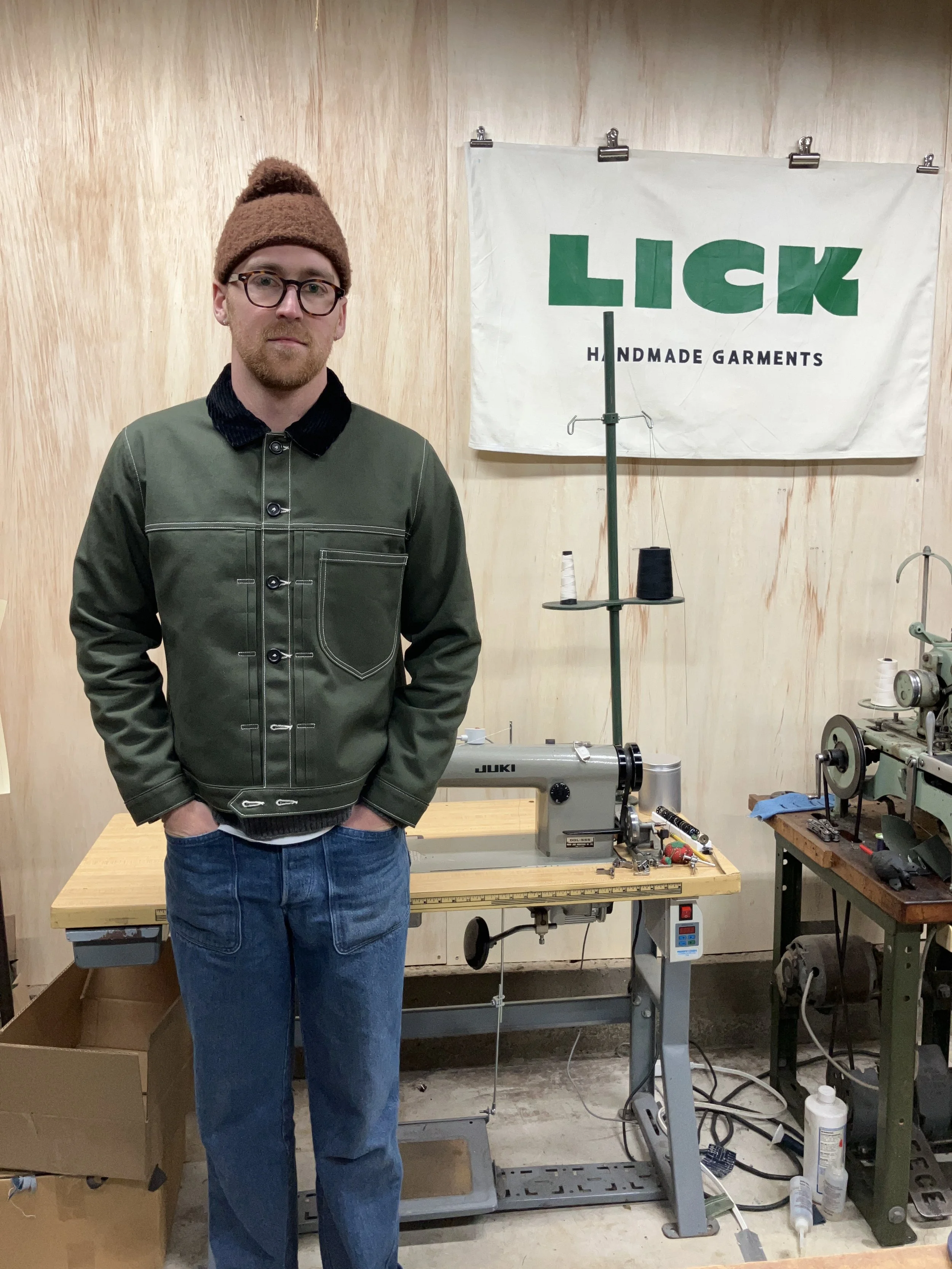Lick is a bespoke clothing project from Miles Hagin. Each piece is made by hand from the ground up. The collaboration begins with a pattern drafted from your measurements. Fabric, fasteners, stitching, and silhouette follow.